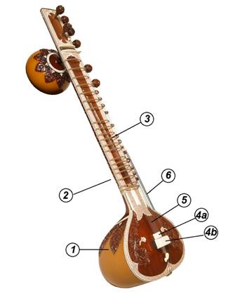 Le sitār se compose d’une gourde semi-hémisphérique