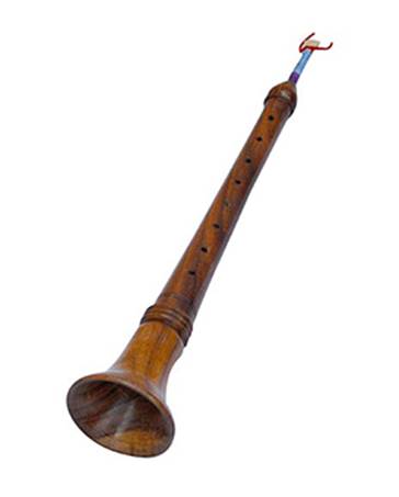 Il est deux fois plus grand (90cm) que le shehnaï, avec un corps